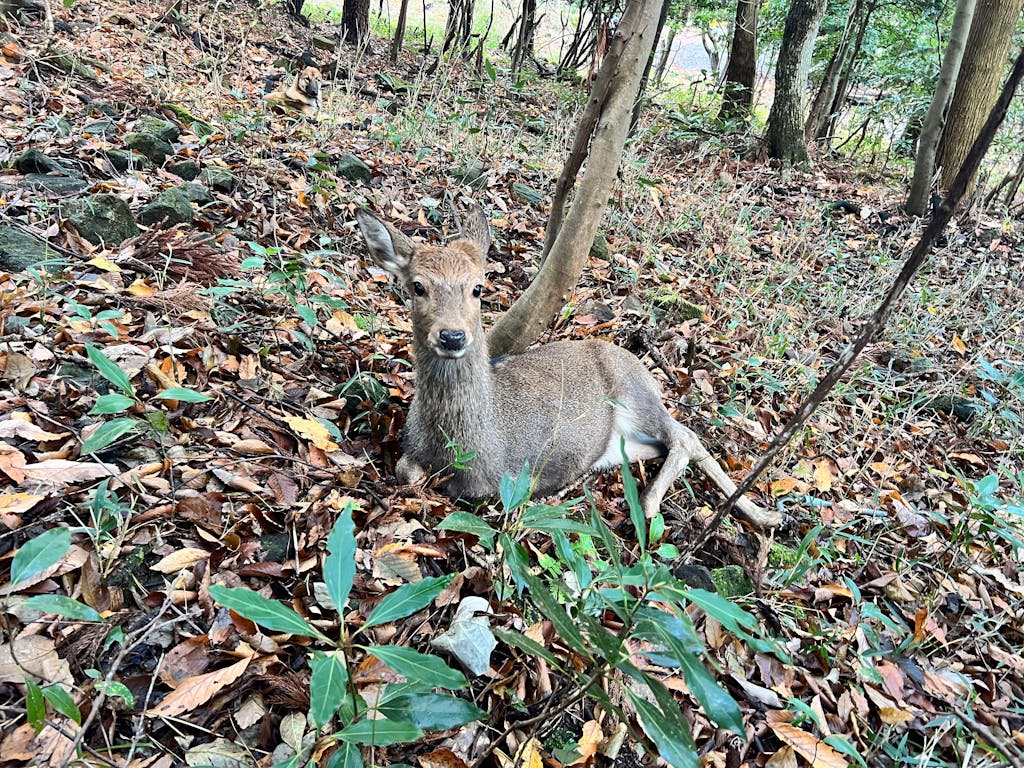 仕掛けて2日後、早速若いメス鹿が捕れました。