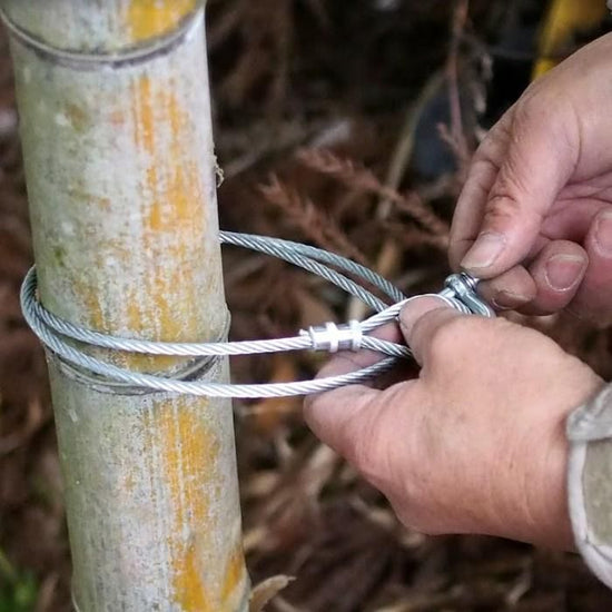 ◯ Wrap the wire rope around the post and attach this product to the wire rope loop (see video).