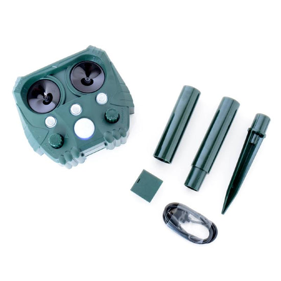 ultrasonic animal repellent solar powered with flashlight