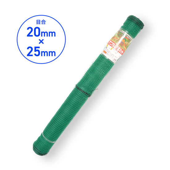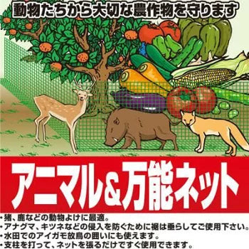 It protects fields and kitchen gardens from wild animals, pets, birds, etc. It can also be used as an enclosure for freeing aigamo ducks in paddy fields. The mesh size is 20mm x 25mm .