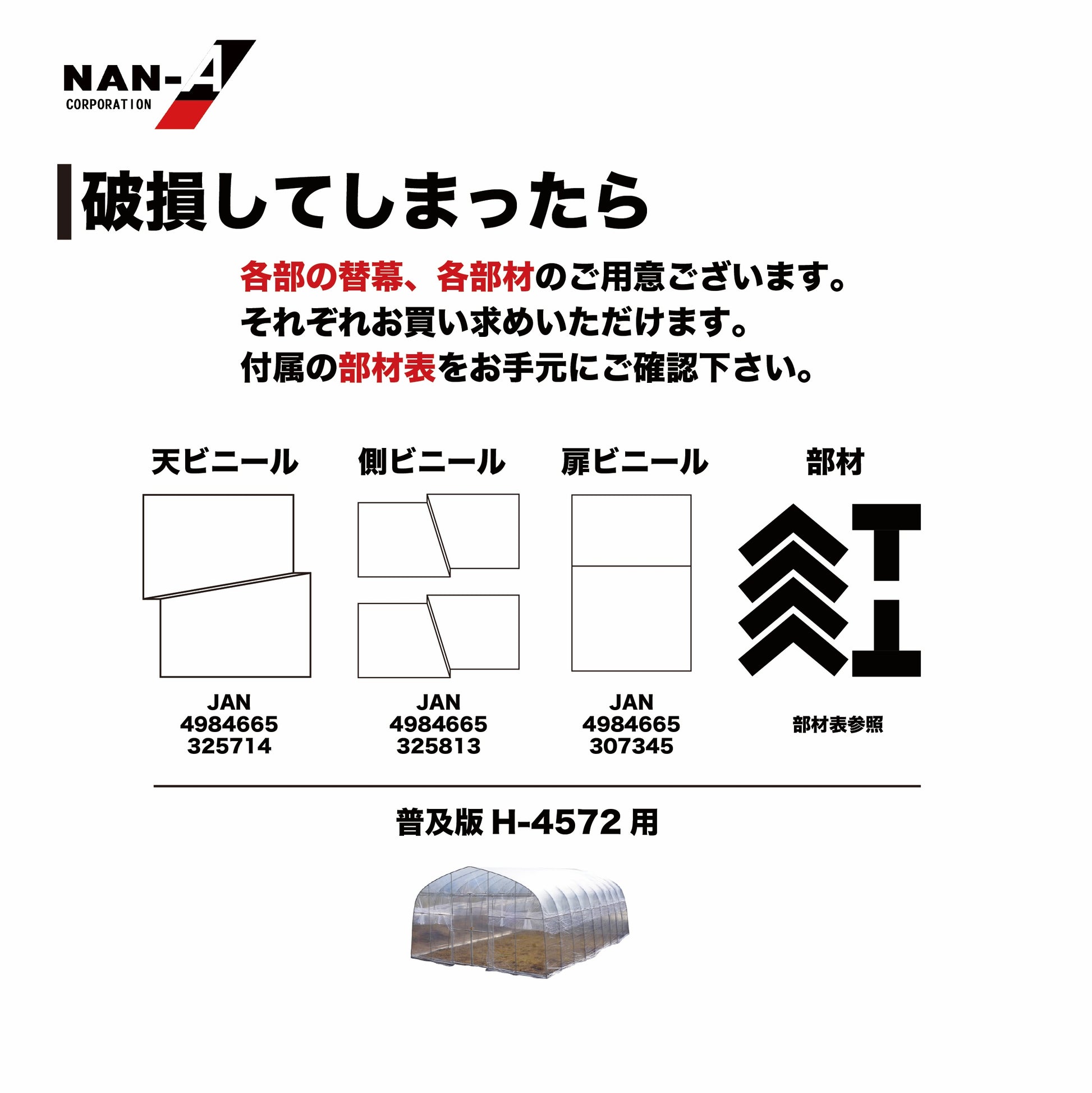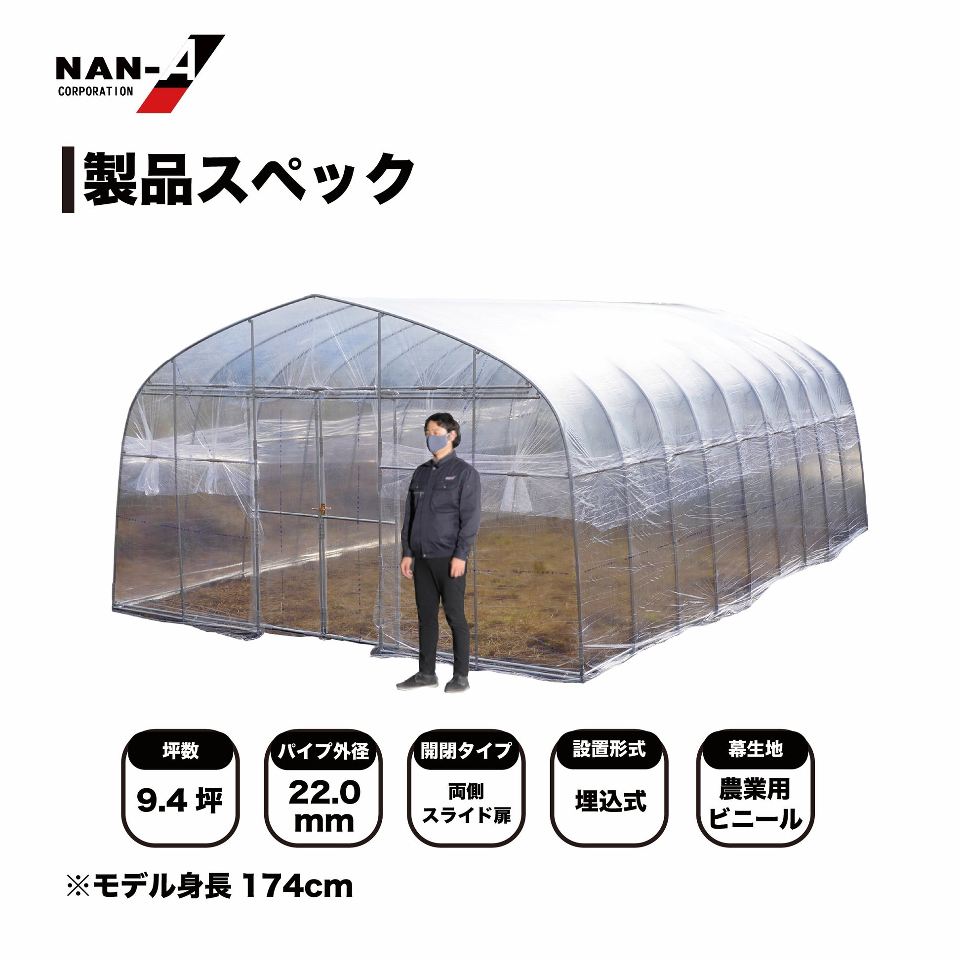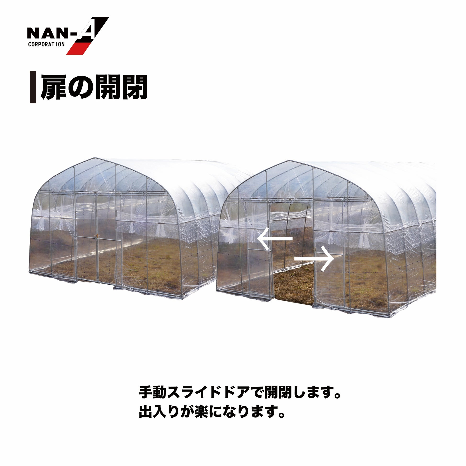 | 備考 | ・厚さ0.1mm農業用透明ビニール・蝶番式扉出入口(ビニール厚さ0.1mm) |