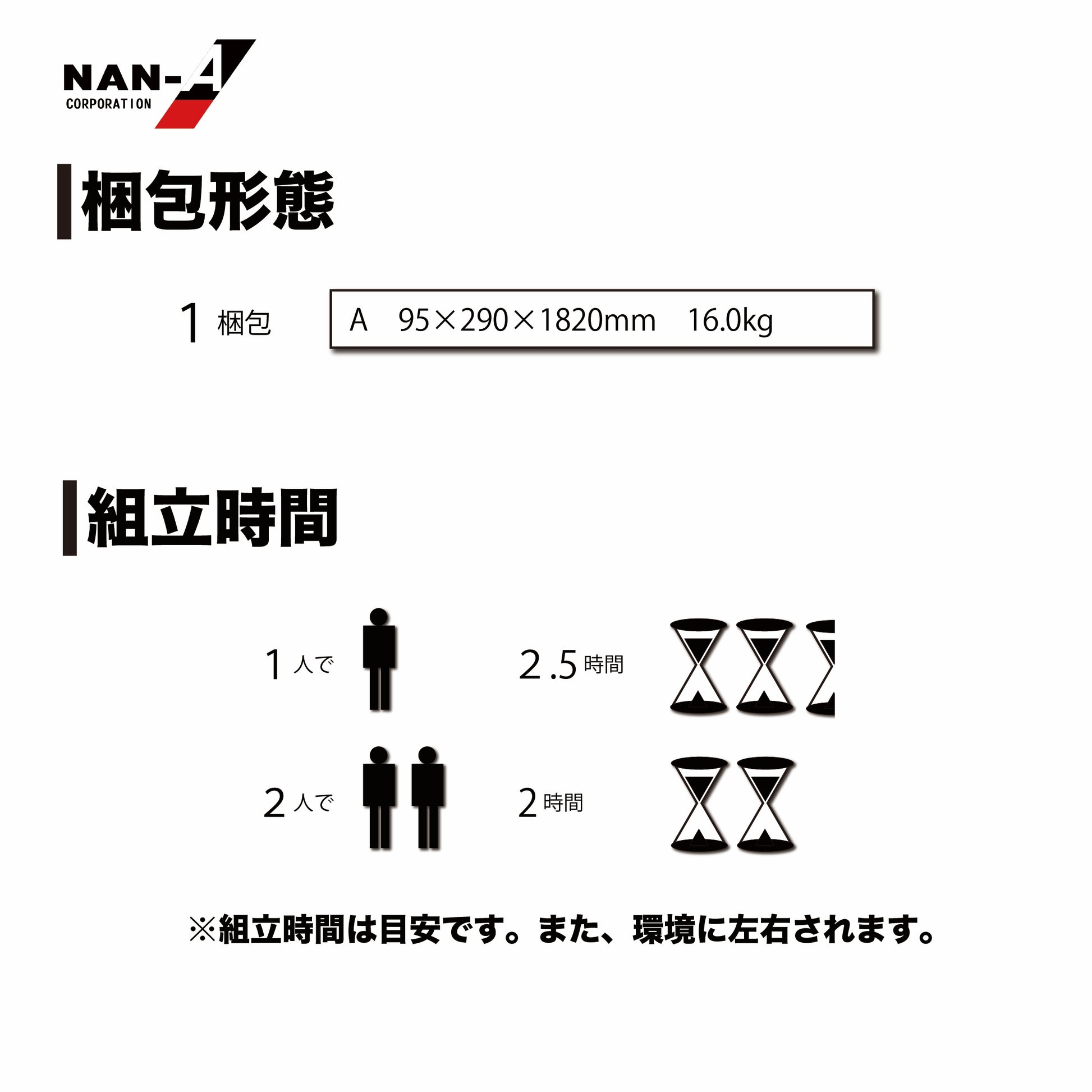| 梱包サイズ | 1梱包 W:290 × L:1820 × H:95mm / 16.0kg |