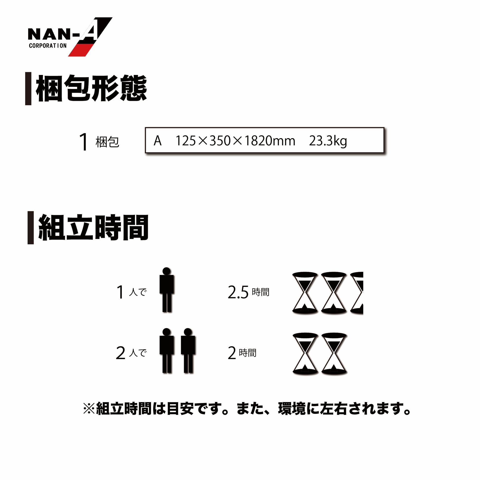 梱包サイズ | 1梱包 W:350 × L:1820 × H:125mm / 23.3kg |