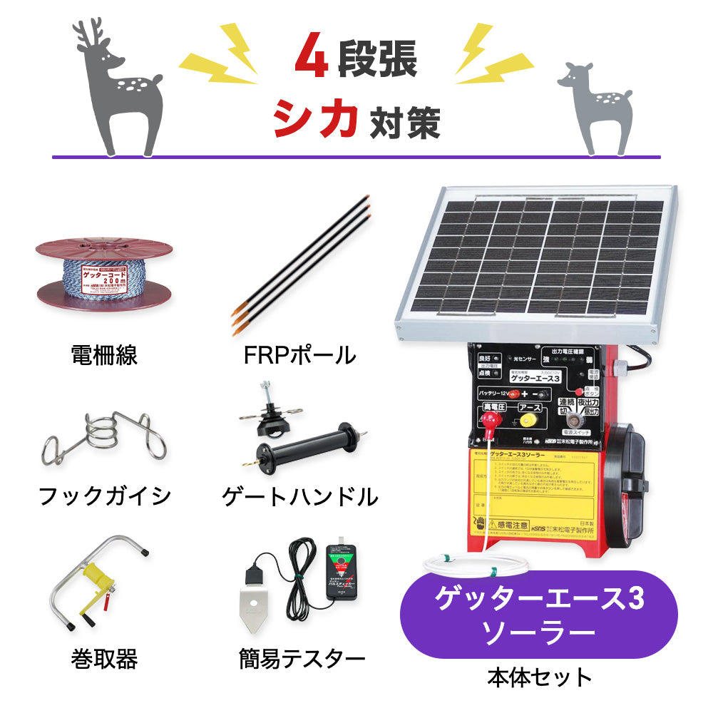 【50m×4段張り】末松電子製作所 電気柵 ゲッターエース3ソーラー シカ対策