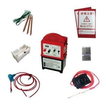 最大電圧は約9,000V。一般的に、雑草や設置不備などで漏電が生じて電圧が下がることが多々ありますが、本器はそのような場合も電圧が落ちにくくなるよう設計されているため、しっかりショックを与えることができます。