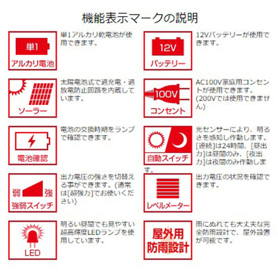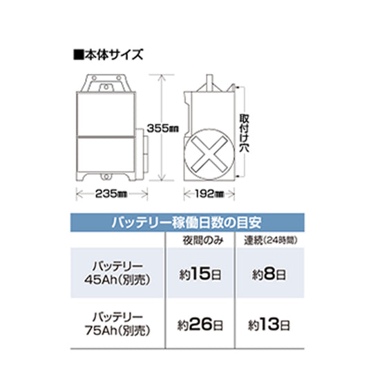 | 電源 | DC12Vバッテリー(別売) |