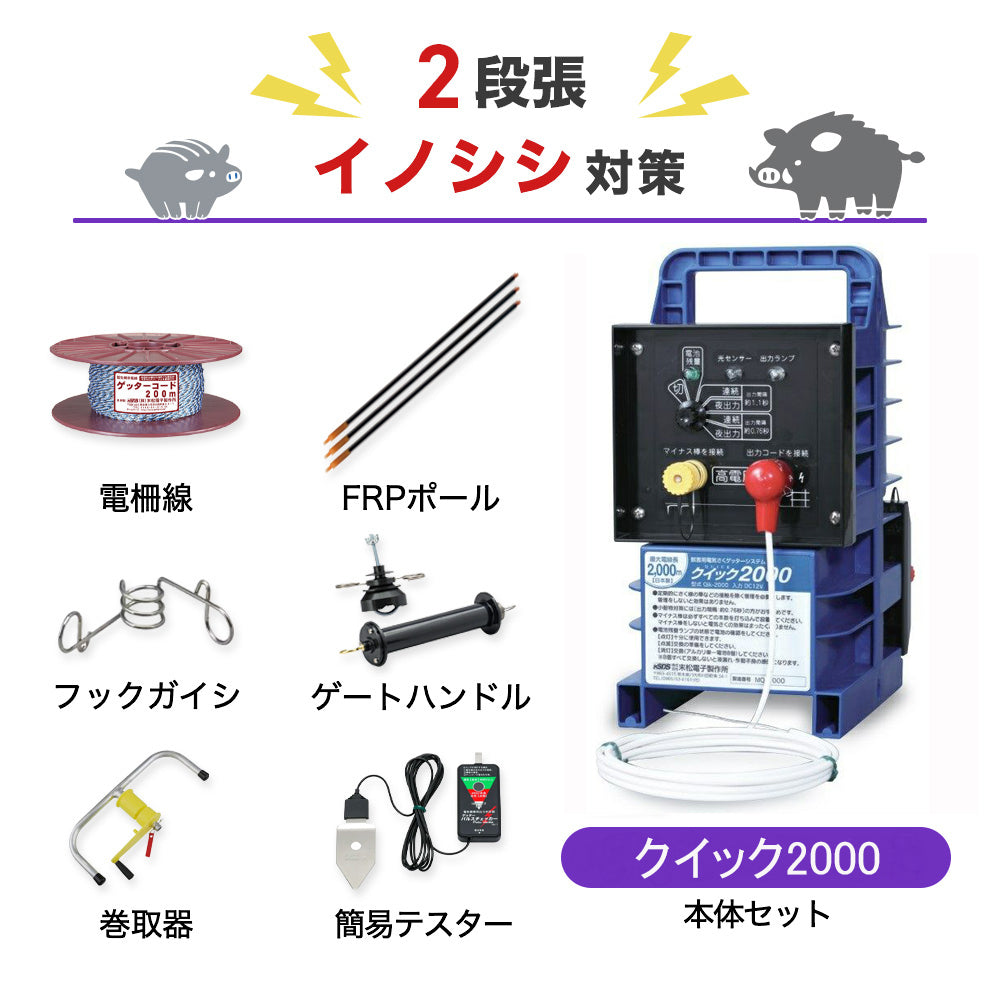 【250m×2段張り】末松電子製作所 電気柵 クイック2000 イノシシ対策