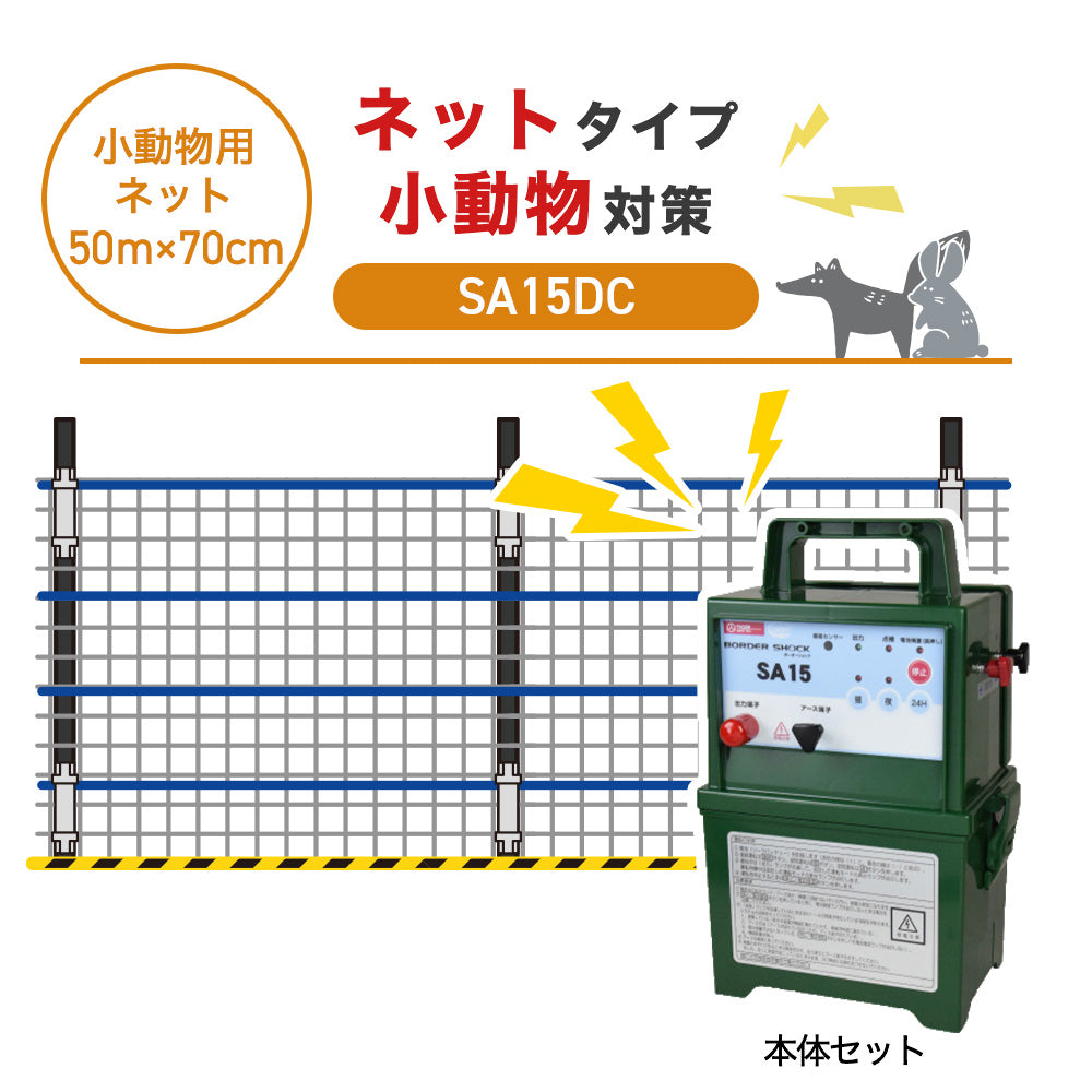 50m分のネットと電気柵が一式揃ったセットです。