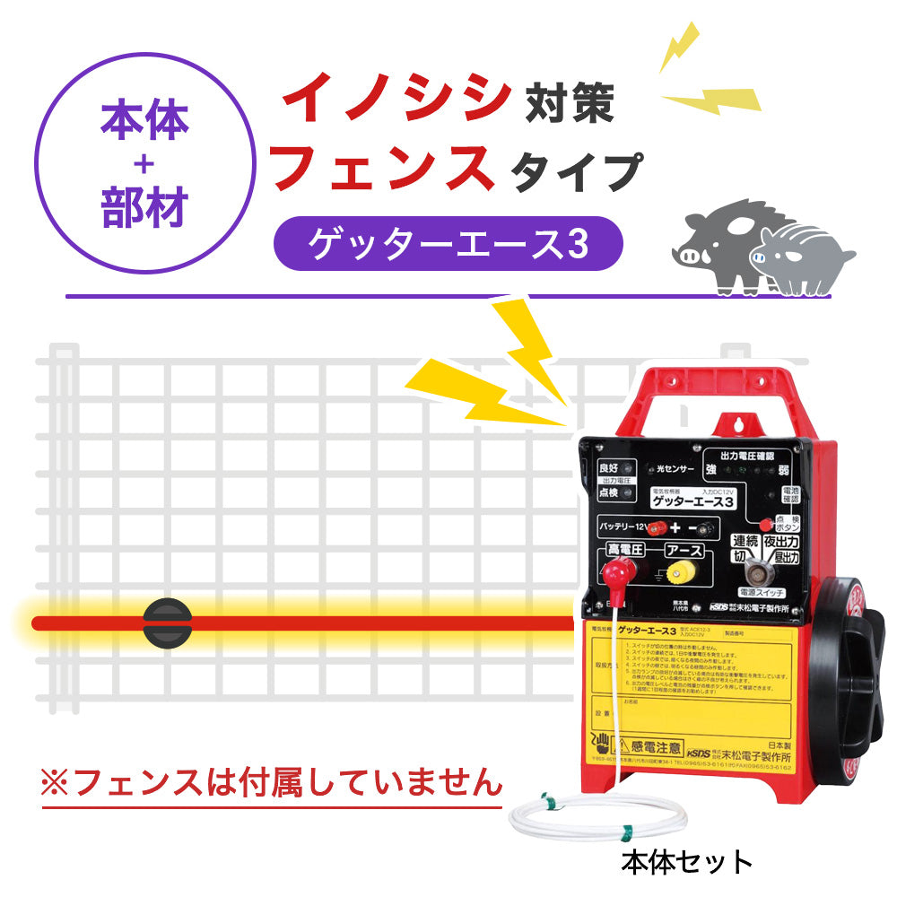 電気柵本体と取付部材のみのセットです。