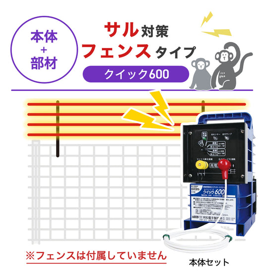 The set includes a rope (electric wire) for transmitting electric shocks, a post for stretching the rope, an insulator, and a gate clip to be installed at the entrance.