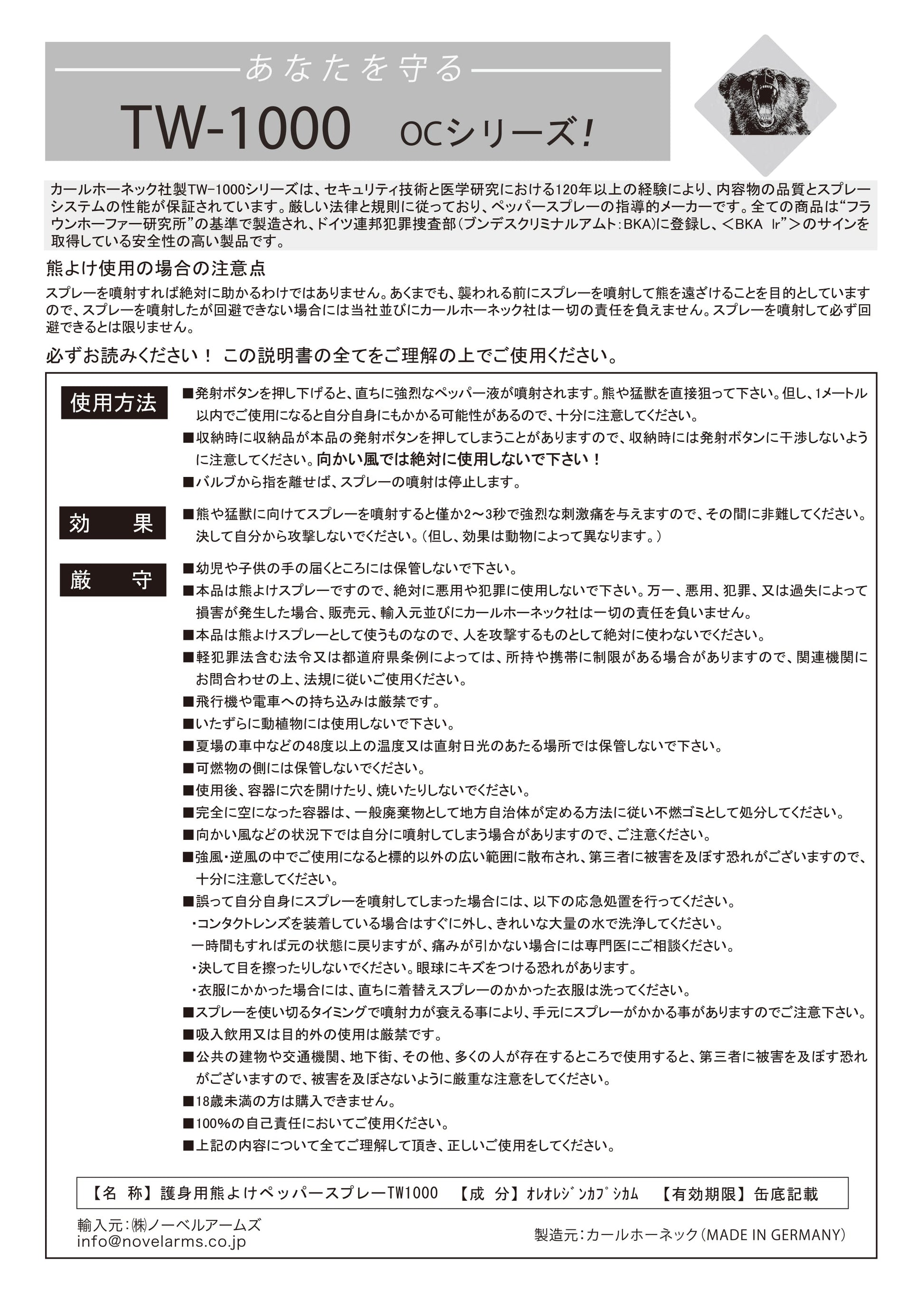 *When carrying this product, it is included in the scope of application such as the Minor Offenses Act. Make sure to carry it along with your trap patrol and equipment for going to the mountains. Also, since it is classified as pepper spray, it falls under dangerous goods and cannot be brought on an airplane. All unreasonable carrying can be subject to the above laws and regulations.
