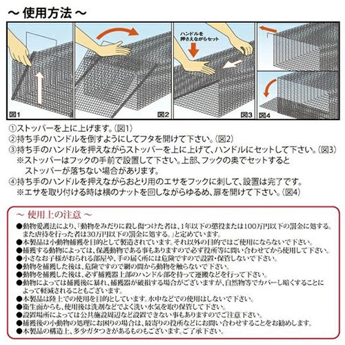 This box trap is very useful for trapping small to medium-sized animals such as raccoons, civets, badgers, nutria, and weasels. It can be used in various situations because of its wide range of animals.
