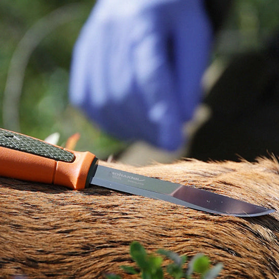 高品質のステンレススチール製のブレードはスウェーデン Alleima(旧Sandvik)社製のステンレス鋼を採用。近年では、ステンレス製品のほとんどがリサイクル合金を使用し、モーラナイフの鋼も80%以上がリサイクルされたスウェーデン鋼からなる合金で作られています。
