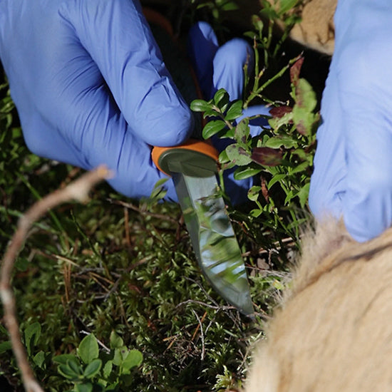 精巧な作業ができるよう刃元から刃先にかけて薄く、スカンジナビアンエッジにグラインドされています。表面が鏡面仕上げになっており、獲物を捌く際にも滑らかに刃が入るように工夫されています。